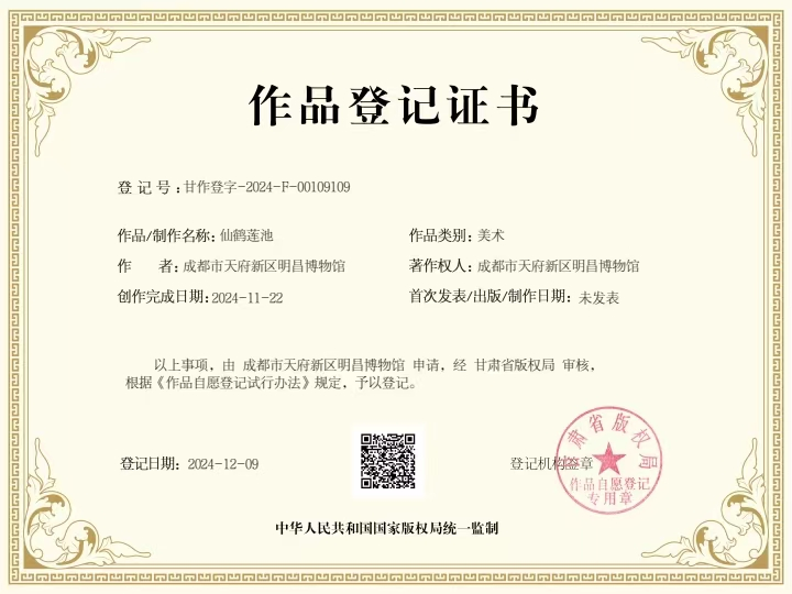 《仙鹤莲池》是一项匠心独运的艺术创作,巧妙融合中国传统元素与现代科技。以《明万历青花花卉水鸟纹梅瓶》为载体,通过数字艺术与珐琅工艺,生动再现仙鹤翩舞、莲池宁静之景,展现跨时空的艺术美感。作品不仅保留了梅瓶的传统韵味,更以现代科技赋予新生,视觉冲击力强,吸引力十足。其精湛工艺、独特创意及深邃文化内涵,引发情感共鸣,成为一件兼具文化意义与艺术价值的珍品